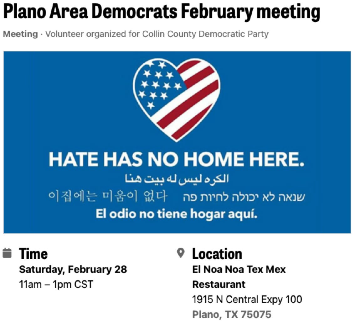 Join PAD at El Noa Noa to meet up and have great food, meet local neighbors that are turning Texas Blue. We often have candidates come by talk and take questions.